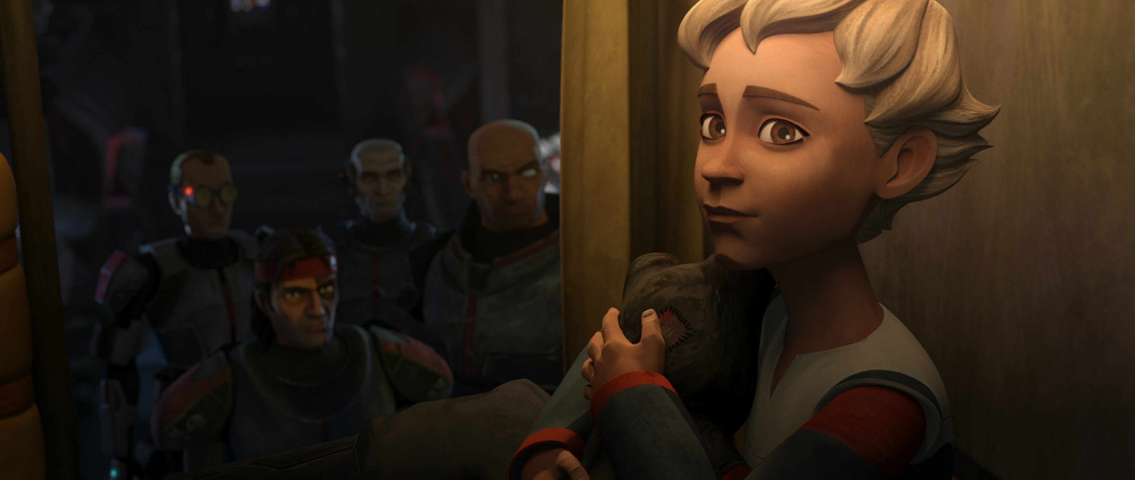 The similarity also galls because such an adventure-heavy plot doesn’t allow much time for the character development of even Hunter, the Batch’s leader. He’s still mostly just the guy with near-supernatural tracking powers, although he does get a nice moment where he tells Omega that she reminds him of himself. It’s cute, but not deep. Perhaps, right now, there are simply too many members in this Batch. Echo is the newest member outside of Omega, but you wouldn’t know it by how little he gets to do and how seamlessly he fits into the group. By the end of the episode, Omega has a new room, but that isn’t character development, either.
