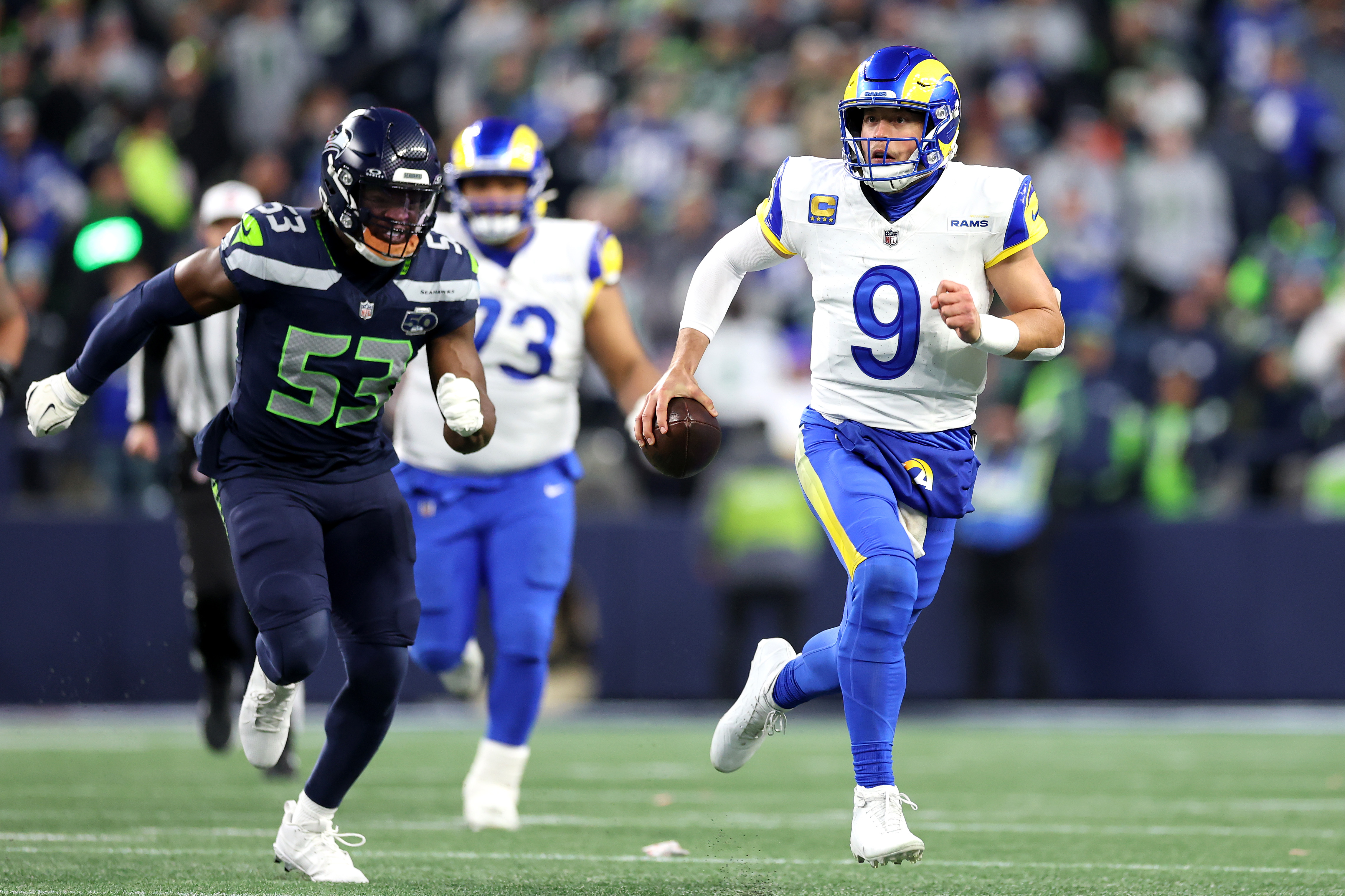 The Rams outgained Seattle 479 yards to 396, led 26-24 in first downs but trailed in time of possession, 31:50-28:10 in front of a crowd announced at 68,773 at Lumen Field. The Rams were successful on one of eight third-down conversion attempts, 12.5% and one of two fourth-down conversion attempts, 50%.